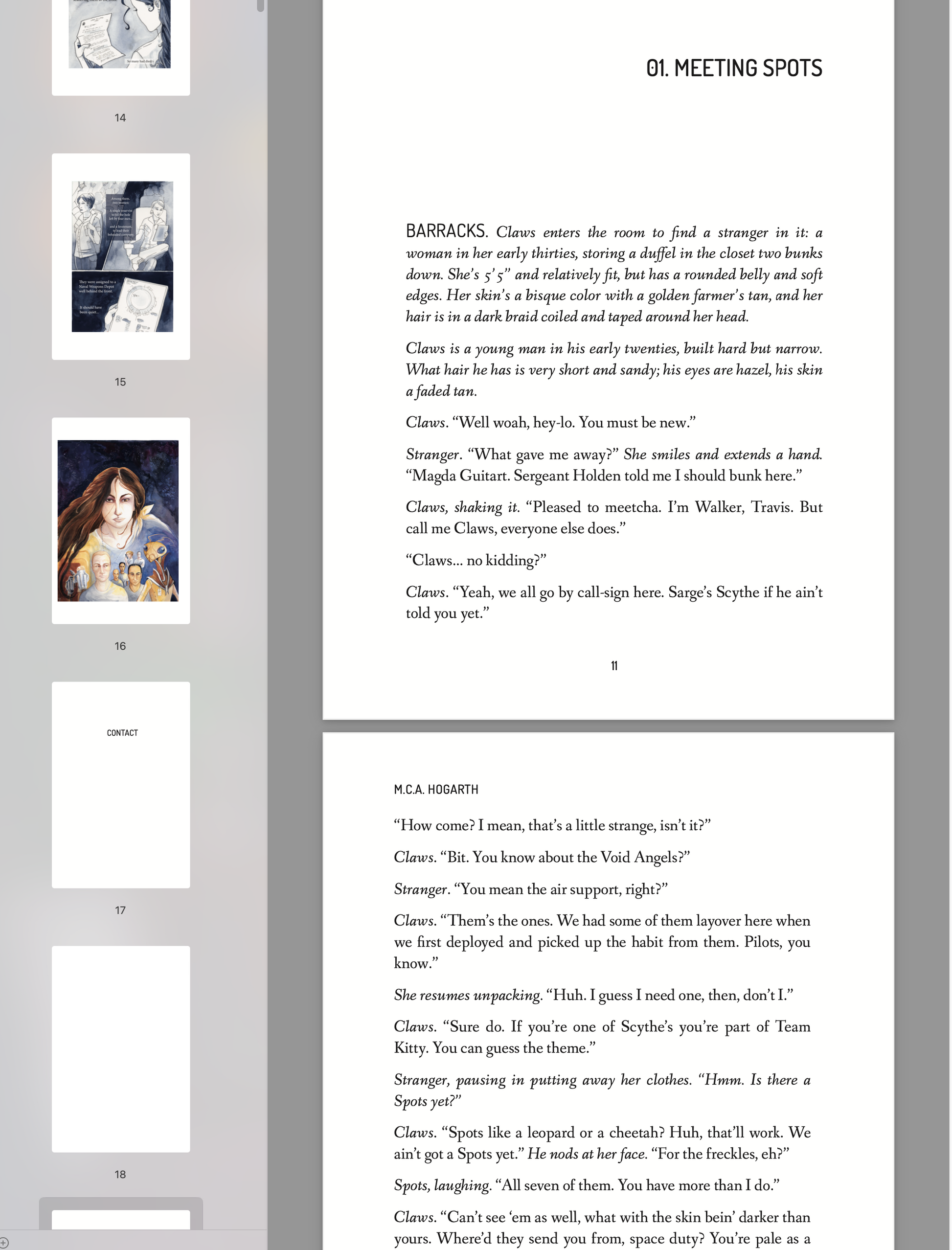 Claws inches around the locker, giving the alien a wide berth, and follows Spots out. In the corridor...