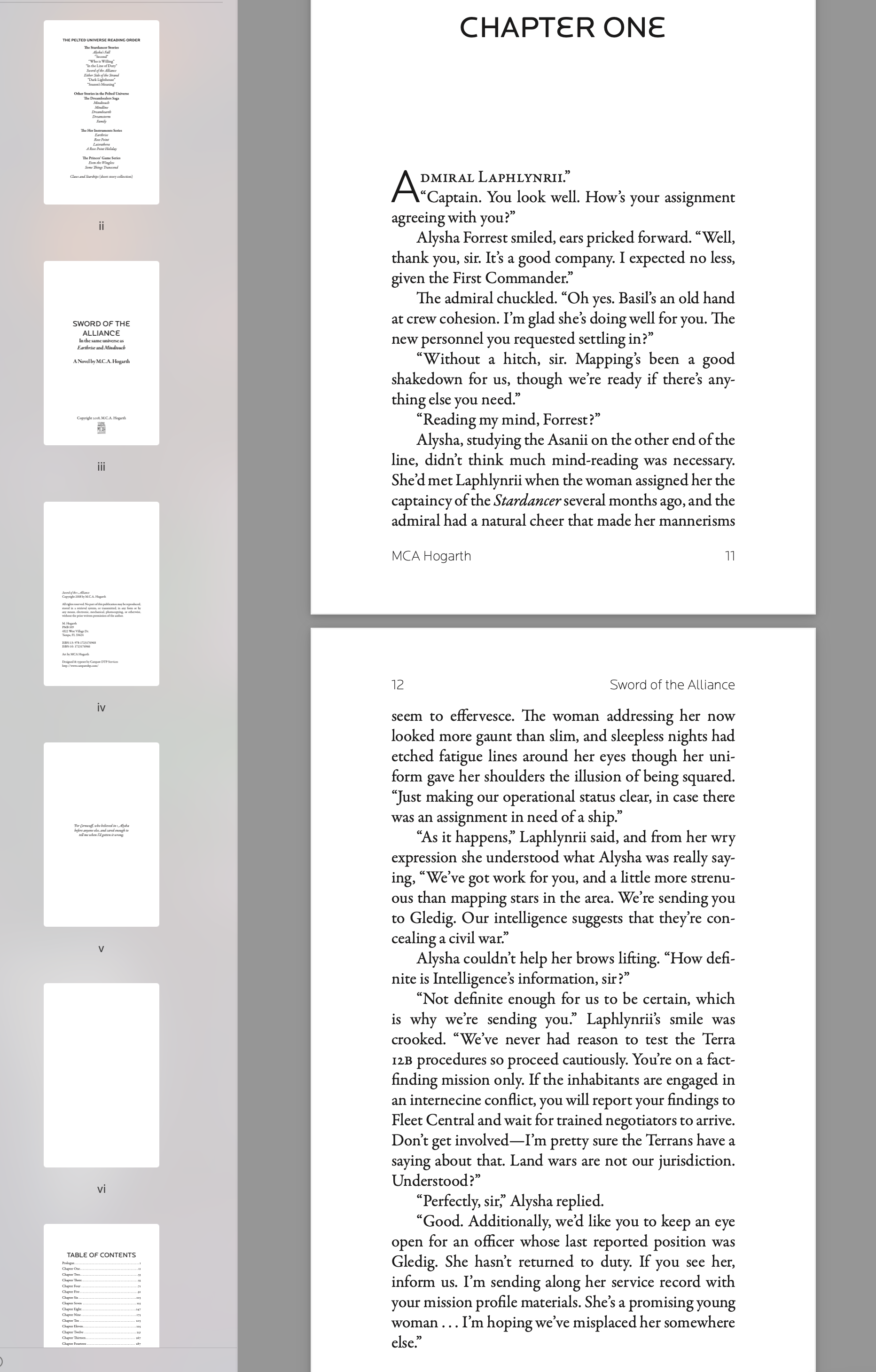 “One would hope the settlers of Gledig have not gone so far,” Alysha said. “The admiral was adamant in her instructions. I gather that if indeed there is a civil war, FC is more interested in studying the phenomenon than in having it immediately resolved.”