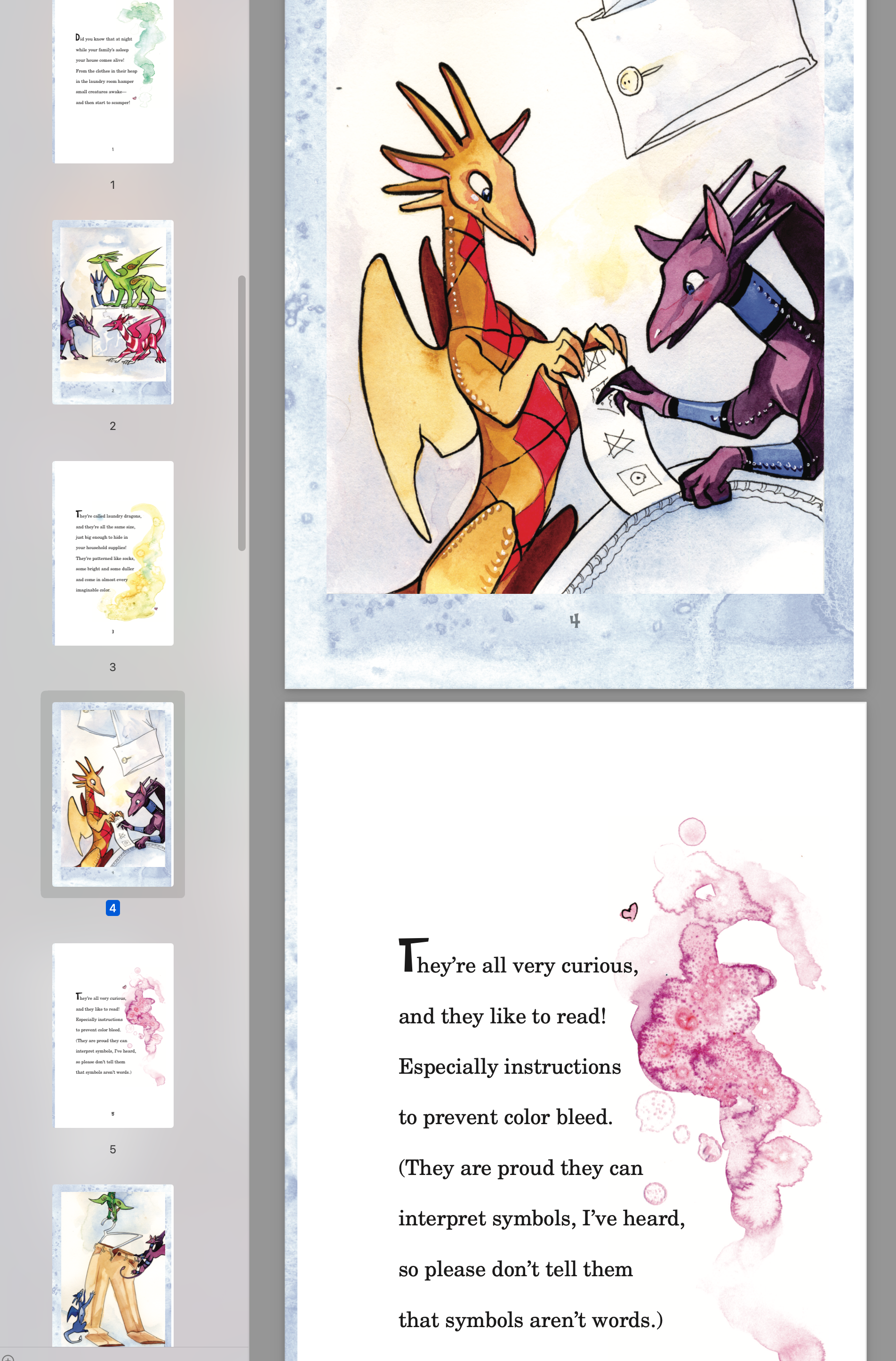 Not all dragons are fire-breathing giants, as this book reveals! Share the adventures of the laundry dragons as they wake, play and do chores while the family's asleep. This rhyming picture book is suitable for reading to all ages, or is appropriate for 5-6-year-olds to read alone (with a little help).
